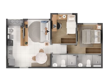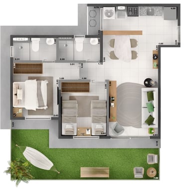 Apartamentos de 94,61 m², 74,78 m² e 68,06 m²